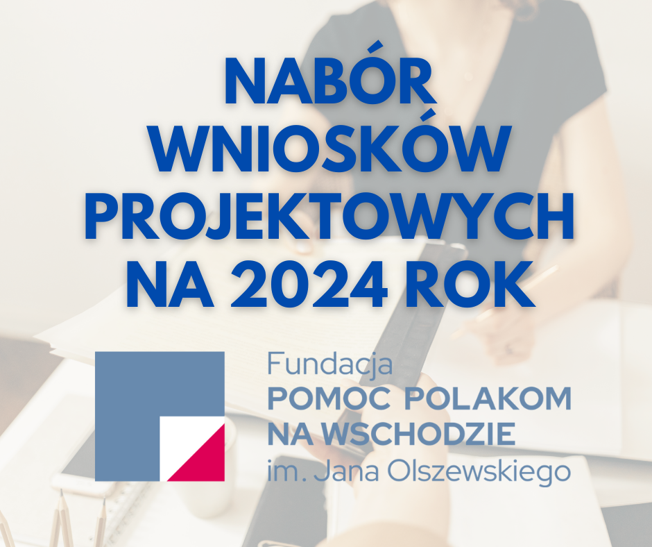 Fundacja „Pomoc Polakom na Wschodzie” im. Jana Olszewskiego ogłasza przedłużenie naboru na wnioski o dofinansowanie projektów działań zaplanowanych na 2024 rok w obszarach: Edukacja, Kultura i promocja Polski na świecie, Publikacje, Dziedzictwo kulturowe i historyczne, Aktywizacja środowisk, Pomoc charytatywna i socjalna oraz wsparcie Mediów*.
