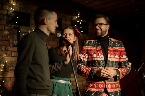 Ku zdziwieniu publiki artyści w drugiej części koncertu opuścili scenę, by za chwilę pojawić się na niej w iście świątecznej odsłonie z równie świątecznym repertuarem. Kolejną niespodzianką był niezapowiedziany utwór “Na całej połaci śnieg” wykonany z pochodzącym z Wilna aktorem i działaczem społeczno-kulturalnym Łukaszem Kamińskim. Cały koncert (nie licząc bisów) został zakończony piękną kolędą “Mizerna, cicha” (z pochodzącą ze Lwowa melodią autorstwa Jana Galla), co z padającym za oknem pierwszym grudniowym śniegiem wprowadziło słuchaczy w niezwykły klimat. Koncert został zorganizowany dzięki pomocy Fundacji Pomoc Polakom na Wschodzie im. Jana Olszewskiego.