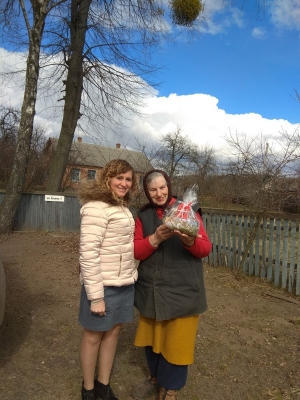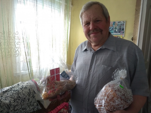 W ramach tegorocznej akcji „Wielkanocna Solidarność” dostarczyliśmy podopiecznym upieczonego „Baranka”, jajka, sól, wielkanocne wyroby ręczne. Wszystkie dary zostały poświęcone w katedrze pw. Św. Zofii i następnie przekazane seniorom z Żytomierza i obwodu: Jadwidze Rogalskiej w. Leznyky chorisziwskij rejon (r. u. 1925), płk. Zygmuntowi Wengłowskiemu (r. u. 1925), Tamari Odincowej (r. u. 1947), Kazimierzowi Sytnickiemu z Dowbysza (r. u. 1949), Oldze Kuriacie z Dowbysza (r. u. 1950), Cezarii Pawłowskiej (r. u. 1929) i Helenie Moskalowej (r. u. 1915).