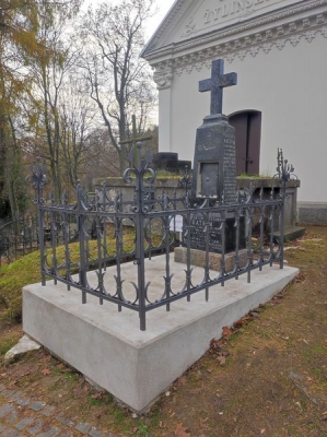 W toku prac odnowiono także ogrodzenie: zostało oczyszczone, naprawione i zabezpieczone, tak aby odzyskało funkcjonalność i spójny wygląd. Przywrócono również zwieńczenie nagrobka – zrekonstruowano brakujący krzyż w materiale odpowiadającym charakterowi obiektu, co pozwoliło domknąć historyczną kompozycję pomnika. Prace zakończyły się uporządkowaniem otoczenia oraz wykonaniem dokumentacji powykonawczej.